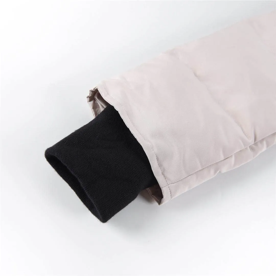 Features: Genuine Design: The authentic Canada Goose pattern is in a grey light color. This ensures that you are stylish and comfortable. Material: Imported polyester-cotton fabric provides a structured yet soft feel. Feather Light 10D is applied to the outer fabric. Filling is genuine white 80/20 duck down. This provides excellent insulation without false claims about higher fill powers. Double-layer nylon with special stitching to ensure durability and comfort. Features a seamless, thick ribbed cuff, a top-grade fleece lining for the pockets and collar, as well as custom YKK zips that ensure durability and smooth operation. The Canada Goose Mystique Parka 3035LB in light gray will keep you warm while looking stylish. The women’s parka is made with high-quality fabrics, premium insulation and durable details. Browse our range of Canada Goose Coats of high quality and explore options like high quality Canada Goose coat to find the best winter wardrobe essentials.